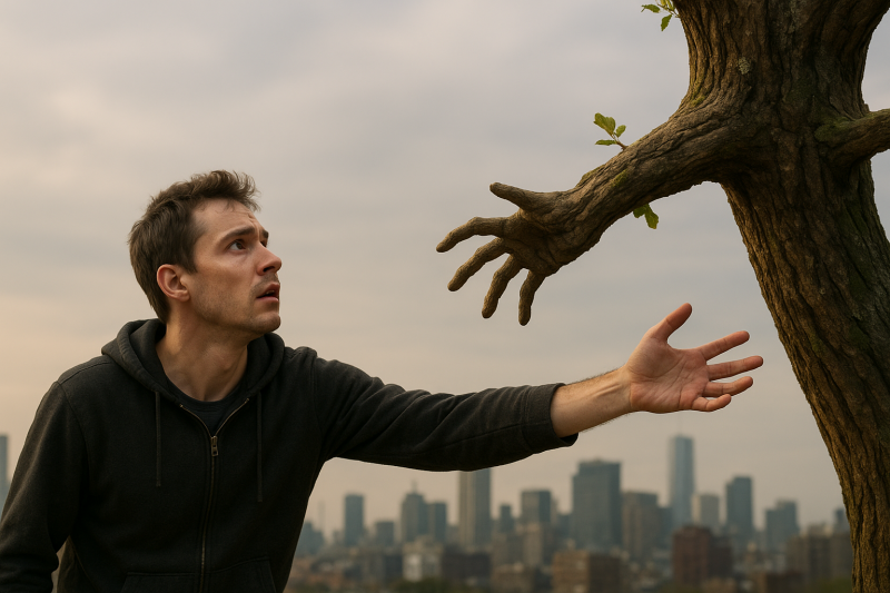 En la ciudad, detrás de la puerta de donde vives hay el rellano de la escalera de vecinos, la escalera o ascensor, la portería y la calle, con sus aceras, sus coches, sus semáforos, su ruido, su luz eléctrica perpetua, su humo y un montón de peña que no conoces de nada o con quien te cruzas cada día pero jamás has hablado ni hablarás.